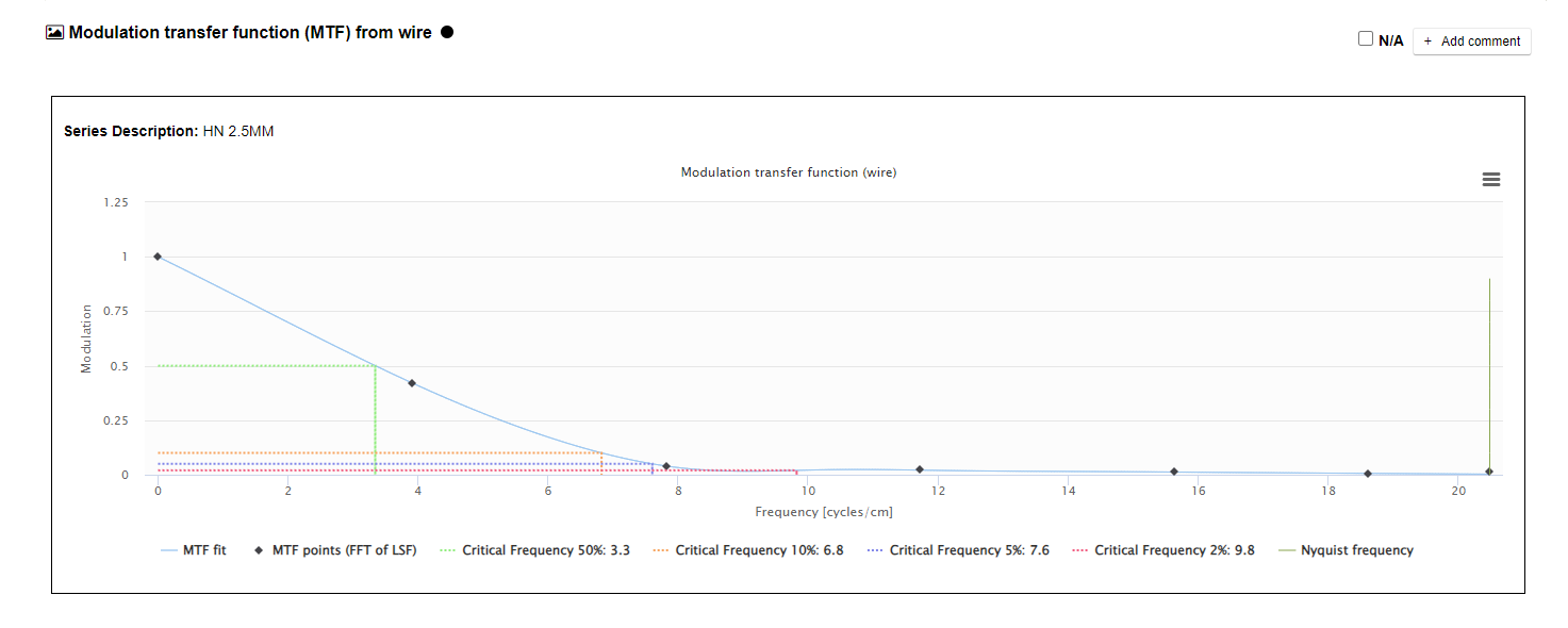 The high-resolution module produces MTF, and line spread function measurements from 0.25mm stainless steel wire. Contrast-to-noise measurements are also made on the PTFE/PMMA interface.