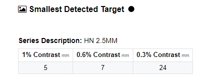 The smallest diameter object that can be discerned against the background is reported for each series.
