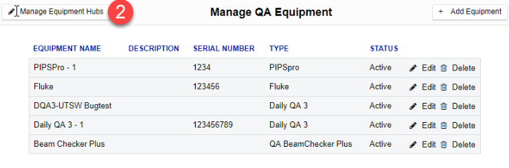 Navigate to “Manage QA Equipment” and click “Edit” for each individual QA Equipment noted above, one at a time: