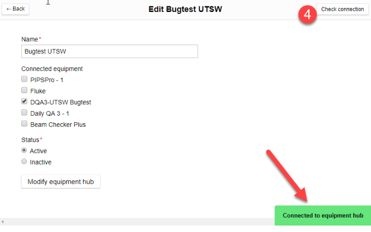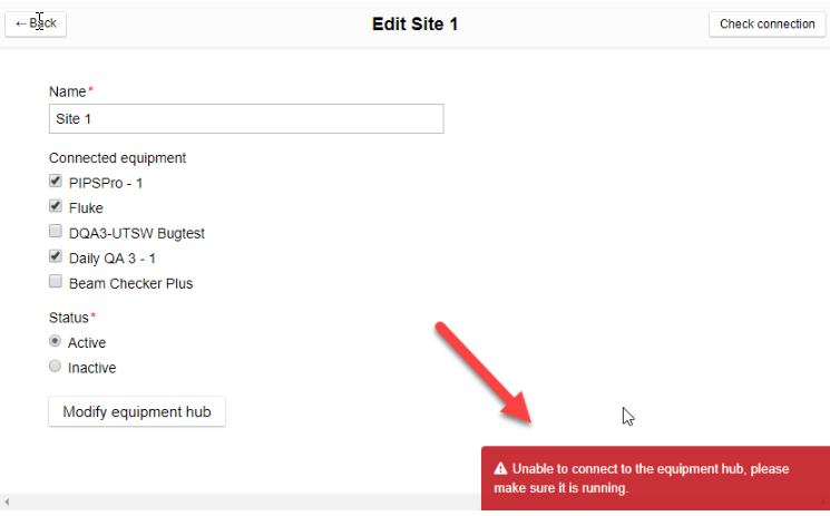 For each QA Equipment make any needed changes and click the “Check connection to equipment” button: