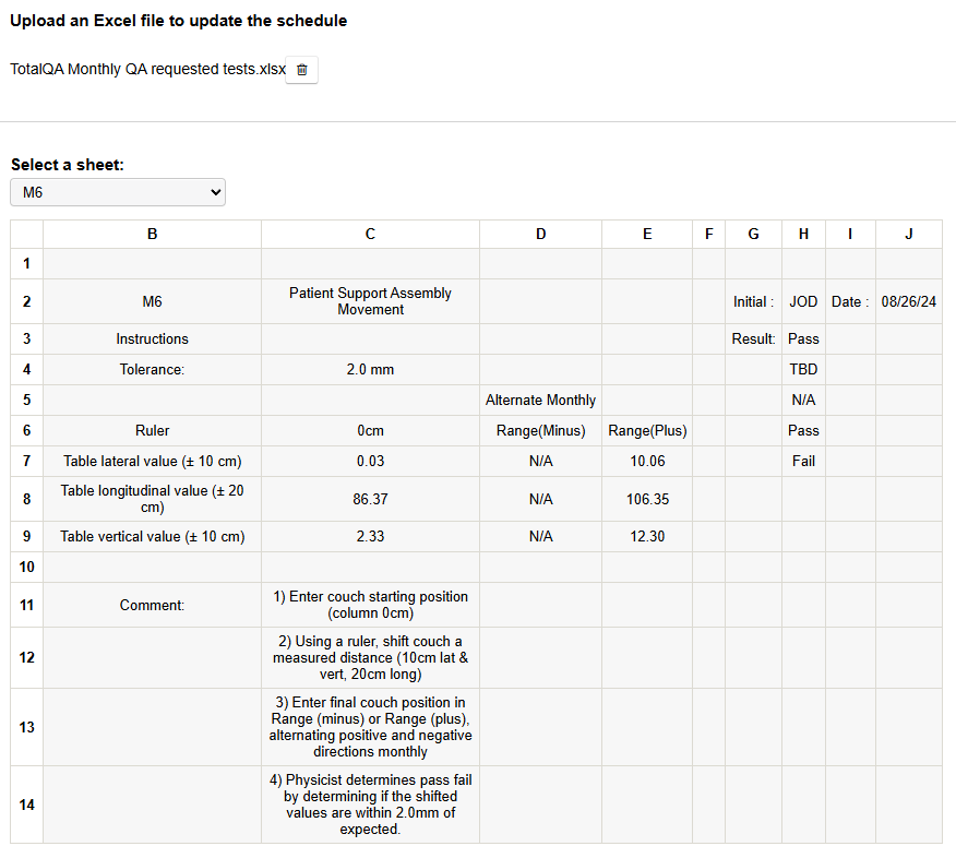 The setup is now complete. When opening a new QA for this schedule, select the spreadsheet to use under the Upload Excel section using the Choose File button