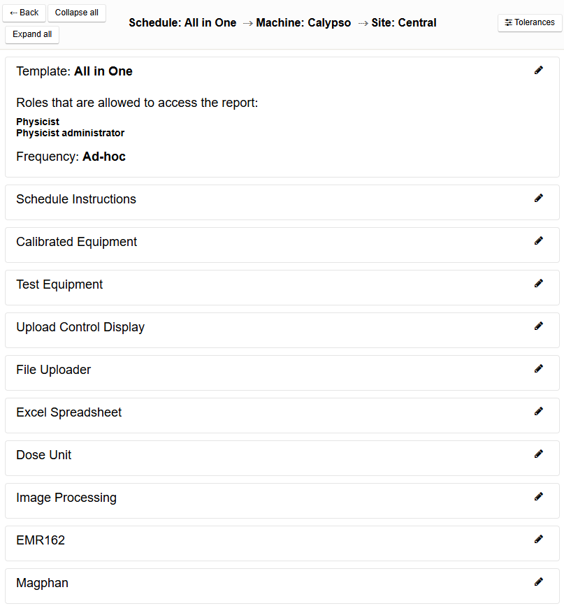 Schedule settings are where schedules are customized to fit the workflow and environment. Schedule settings may look different from schedule to schedule as some sections are only visible when a test is in the template that requires a specific settings section. The Schedule Instructions, Calibrated Equipment, and Test Equipment sections are always available for all schedules.